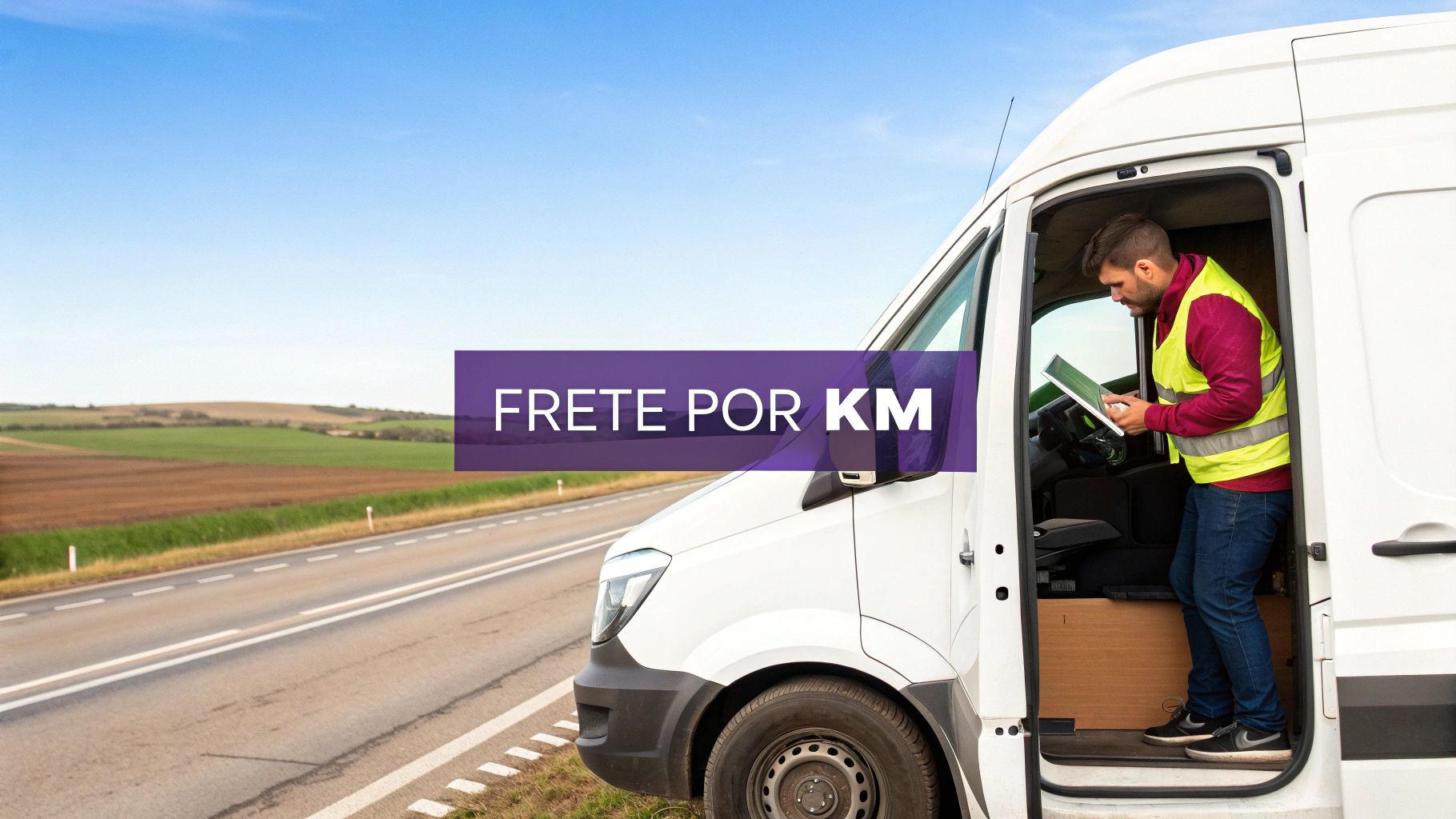 A lógica é bem parecida com a de uma corrida de táxi ou de aplicativo. Existe um valor fixo de partida, a famosa “bandeirada”, e um custo que vai aumentando a cada quilômetro percorrido. A tabela de frete por km rodado funciona exatamente assim, definindo um preço base que escala conforme a distância entre o ponto de coleta e o endereço de entrega.